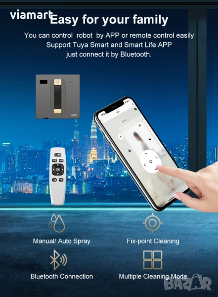 • Мобилен контрол чрез приложение (Tuya Smart / Smart Life) и дистанционно управление