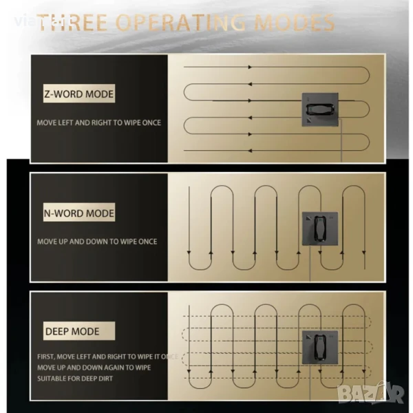 Избирайте между Z режим (ляво-дясно движение), N режим (нагоре-надолу) или Deep режим за интензивно почистване при по-силно замърсяване.