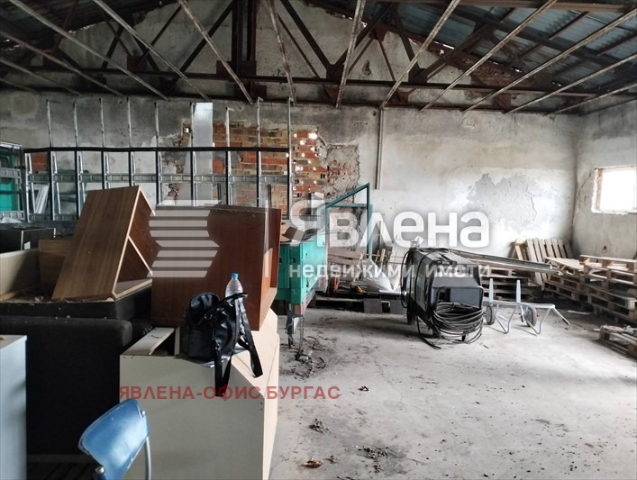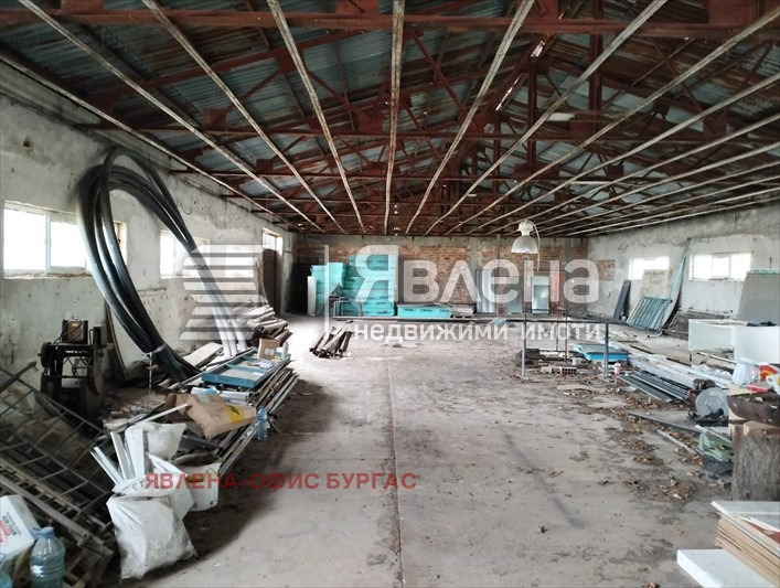 Агенция 'Явлена' предлага за продажба индустриално помещение, тухлена сграда на един етаж с площ от 610 кв.м., разположена върху земеделска територия, НТП За друг вид производствен, складов обект, площ 3670 кв. м. плюс съседен парцел със същите показатели с площ 2281 кв. м,. Вътрешните размери на халето са 36 дължина и 13 широчина. Намира се близо до Винпром Поморие и до новия високоскоростен път Бургас - Слънчев бряг. Без партиди за ток и вода. Имотът е подходящ за инвестиция, за изграждане на складова база или за направа на хладилни камери с фотоволтайчна система. За огледи предварителна уговорка. Брокер: Калина Василева. РТ 2218 (yavlenaCOM/137130).