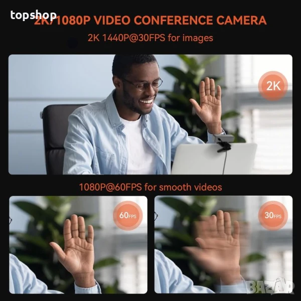 【2K Webcam with Noise Reduction Dual mics record】1440P/30fps or Full HD 1080P/60fps video, outputs crisp, natural true-to-life video with smooth motion. Dual mics record stereo audio with a voice pickup radius of 7ft, 90° circular-sector directional voice pickup technology blocks unwanted noises.