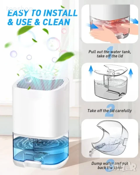 С големия прозрачен резервоар за вода от 1000 ml можете да видите количеството вода, събрано от влагоуловителя в реално време.