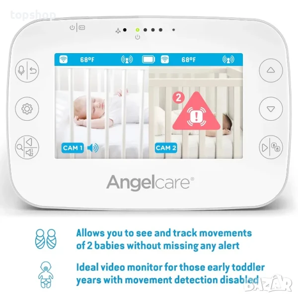 Незаменим помощник в грижата за бебето, видео бебефонът AC327 на марката Angelcare гарантира постоянен контакт с него, тъй като проследява и най-малките движения. Моделът позволява и добавяне на второ устройство, което е особено подходящо за наблюдение на близнаци или на две деца на различна възраст.