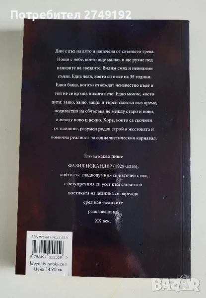 Ето за какво пише Фазил Искандер, който със сладкодумния си източен стил, с лириката и искрящия си хумор, с безупречния си усет към словото и поетиката на делника се нарежда сред най-великите разказвачи на ХХ век.