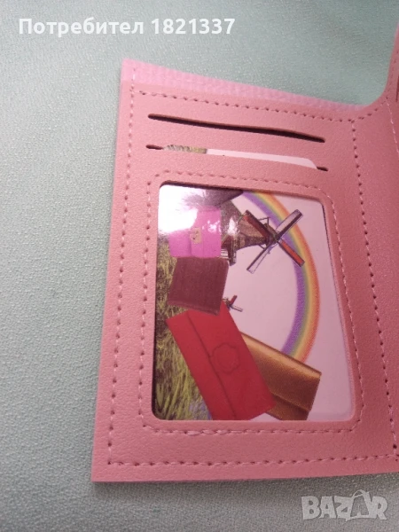Комплект портмоне с бижутаПортмонето е с отделение за карти и място за снимка. Размерите са ширина 11 см и височина 9 см, в разгънат вид дължина 24 см.Комплекта бижута включва: колие, обици и две гривни.