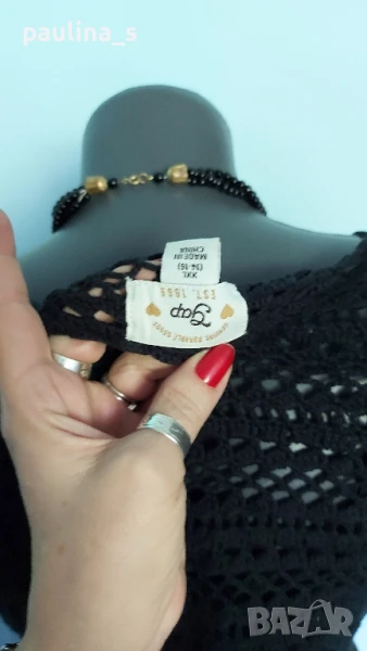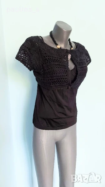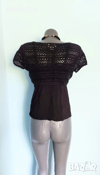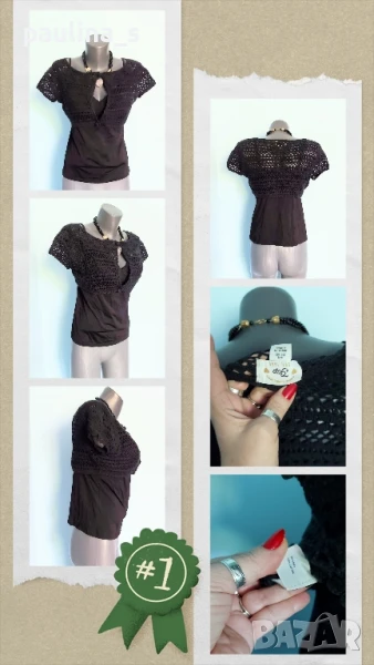 4️⃣. Колаж / L / 2XL - "Gap". Цената е крайна 49,99лв. Черен, къс дантелен топ от 100% органичен памук. Плетивото има еластичност и покрива няколко размера. Копчетата са изплетени, също, може да се носи със закопчано само горе или долу. На живо е хипнотично красив, без дефекти и етикет.