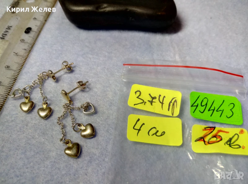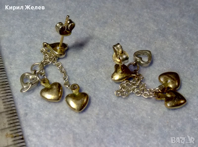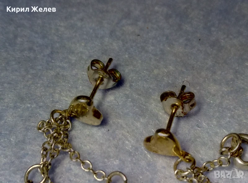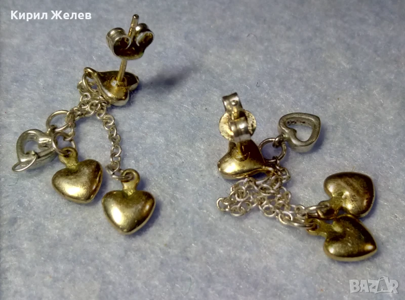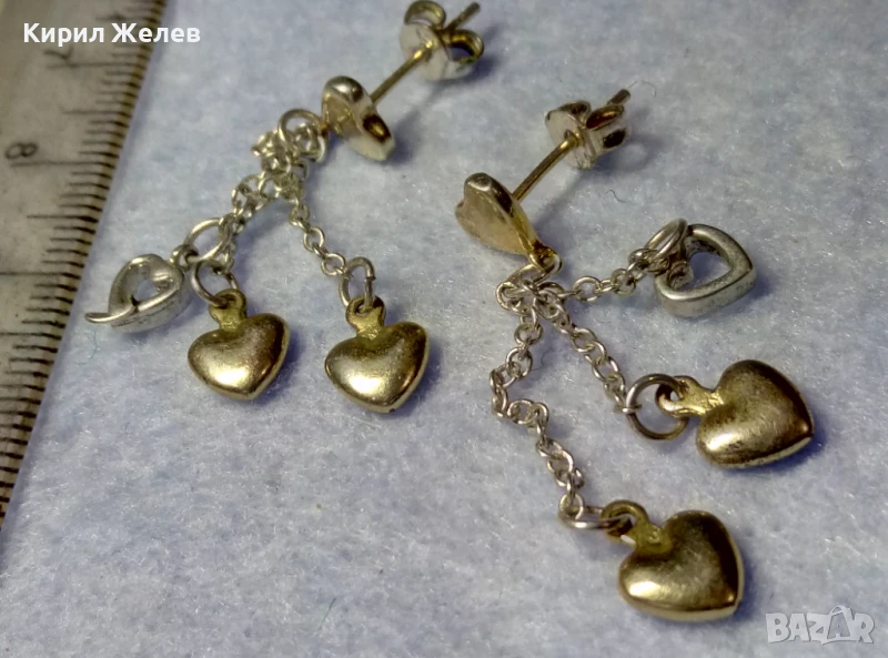 ПРЕКРАСНИ НЕЖНИ ПОСРЕБРЕНИ ОБЕЦИ СЪРЧИЦА от БЛАГОРОДНА СТОМАНА с ЖЪЛТА ПОЗЛАТА и ПЕЧАТИ 925 49443