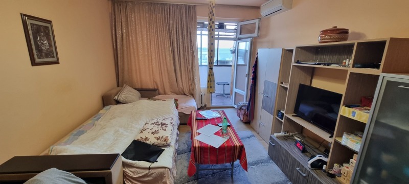 Продава се двустаен апартамент в жилищен комплекс 'Орел' със застроена площ от 58 квадратни метра, състоящ се от хол, спалня, кухня, коридор, санитарно помещение и две тераси.