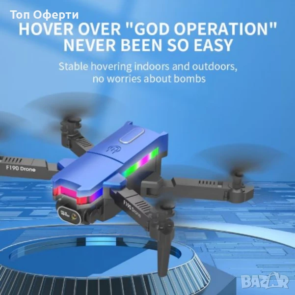 Дрон F190 с 4K камера, LED светлини и WiFi – Черен модел с висока маневреност и интелигентни функции