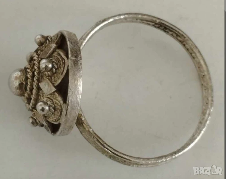 Стар сребърен пръстен с филигран, Царство българия дамски пръстен сребро