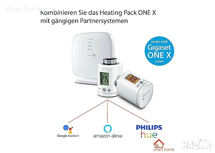 Gigaset Heating Pack ONE X - Комплект термостати за интелигентно управление на отоплението - Спестява разходи за отопление - с 2 термостата и базова станция с програмируема температура - Управление чрез приложение, бял