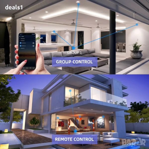 – Групов контрол и споделяне – контролирайте няколко крушки едновременно и споделяйте управлението с близки.