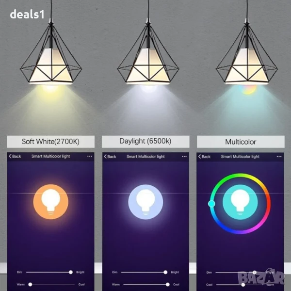 – Цветна светлина RGBCW с 16 милиона цвята и регулируема температура от 2700K до 6500K.