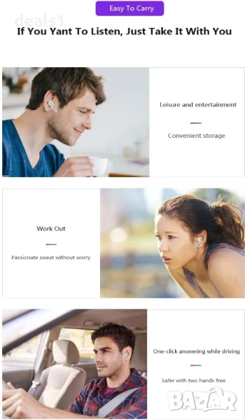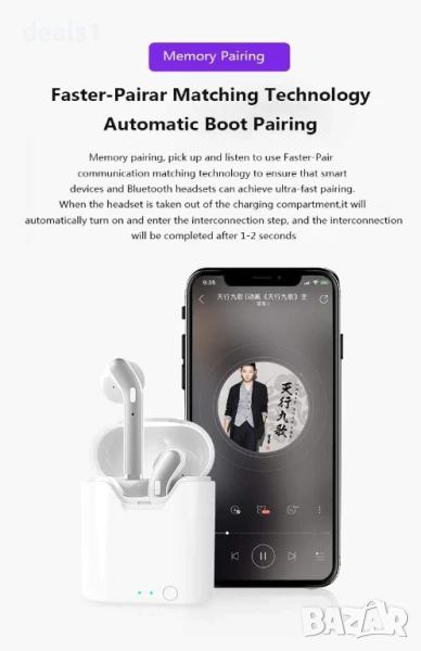 Функции: вграден микрофон, сензорно управление, автоматично сдвояване