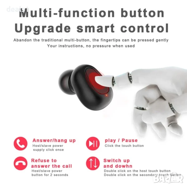 Сензорно управление – Лесно превключване на песни, регулиране на звука, приемане/отхвърляне на обаждания и активиране на гласов асистент само с едно докосване.