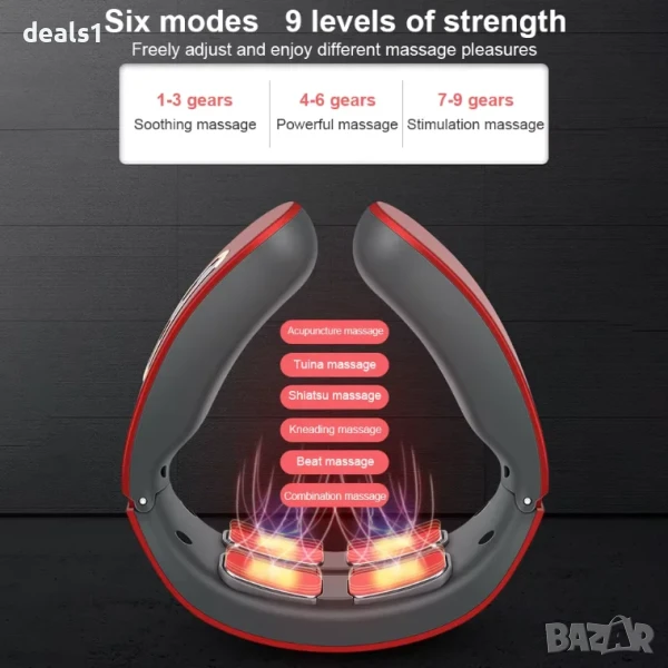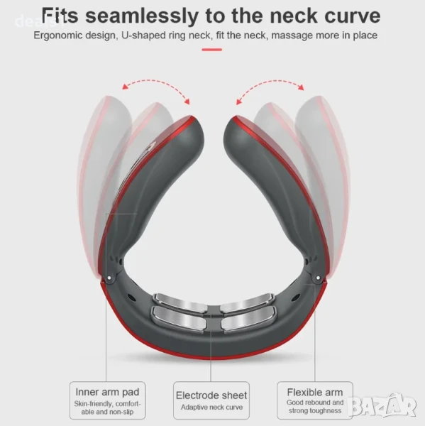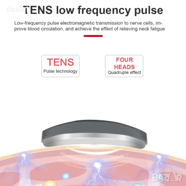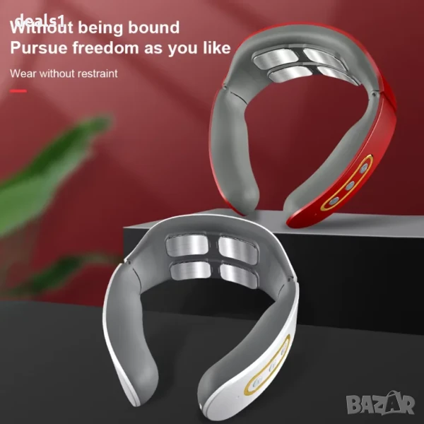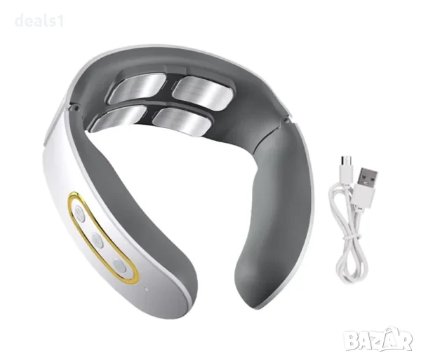 – Електрически масажор за врат с пулсова технология и функция за загряване, предназначен за облекчаване на болка и напрежение във врата.