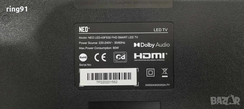 T-Con - PT430CT03-14-C-V2 TV NEO LED-43FS30 → Обява 50535817