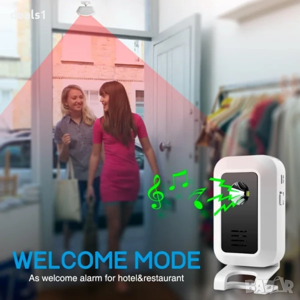 – Широка приложимост: Може да се използва като приветствен звънец през деня и охранителна аларма през нощта. Подходящ е за входни врати, алеи, дворове, апартаменти, офиси и магазини. Не е подходящ за външна употреба, тъй като няма водоустойчива функция.