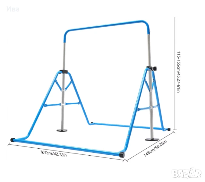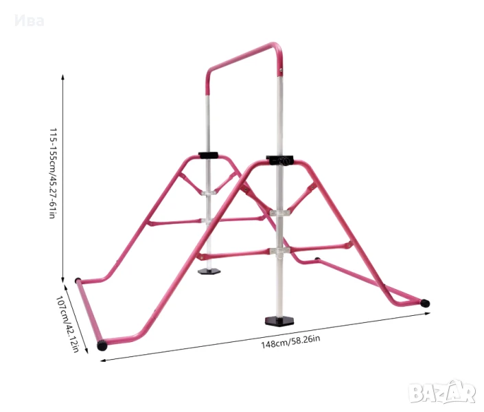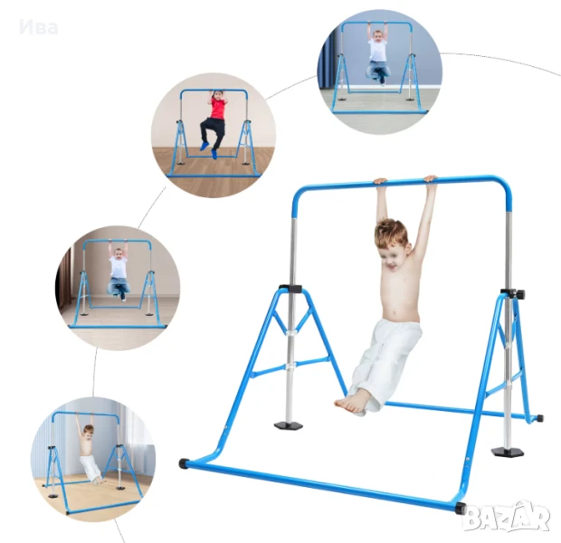 Представяме ви детски гимнастически лост - сгъваем, регулируем лост за тренировки и гимнастика, с регулиране на височината.