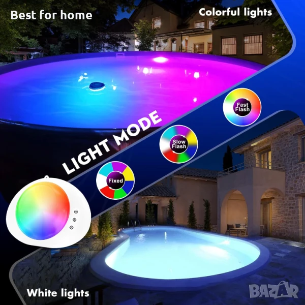 Акумулаторна лампа за басейн - Нашите LED лампи за басейн са с вградена акумулаторна батерия и могат да се зареждат бързо чрез включения USB кабел. Няма нужда от смяна на батерии, което ви спестява пари! Само си представете, след натоварен ден през горещото лято, довличате умореното си тяло до басейна и виждате водата, осветена в различни цветни светлини. Цялата ви умора изчезва. Тези подводни лампи са идеалното решение за добавяне на забавна атмосфера и важна светлина за безопасност и удобство.
