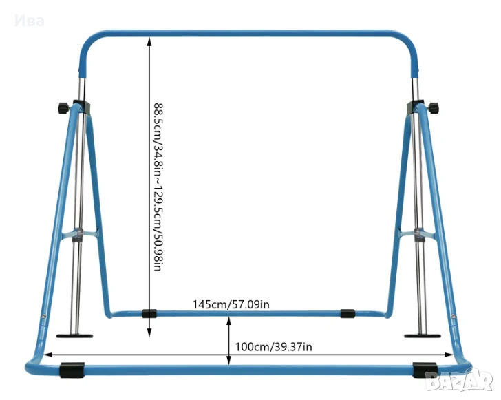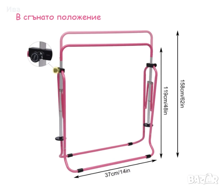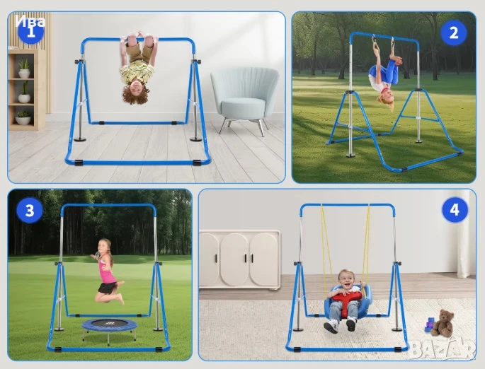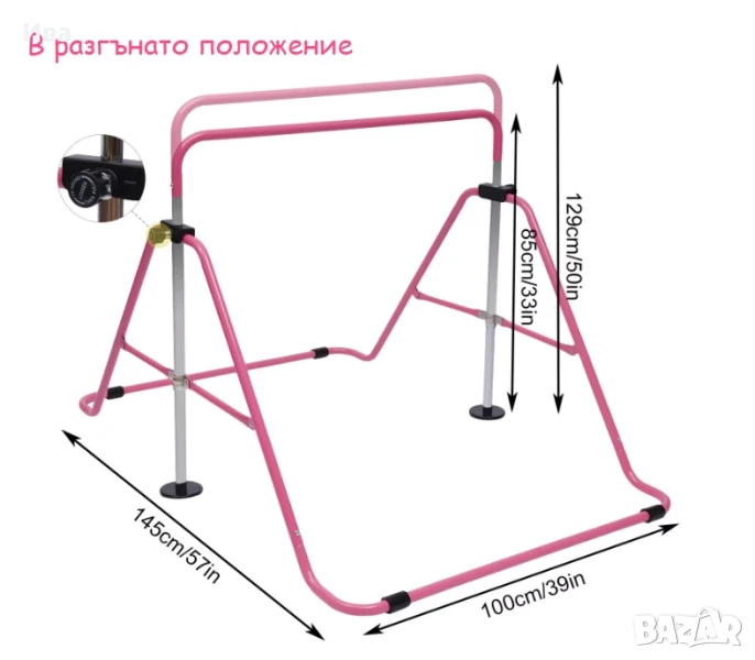 Представяме ви детски гимнастически лост - сгъваем, регулируем лост за тренировки и гимнастика, с регулиране на височината.