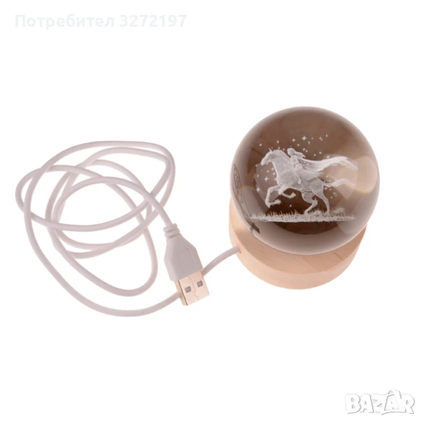 LED Светеща кристална топка/лампа, 3D сензорна- Принцеса на кон