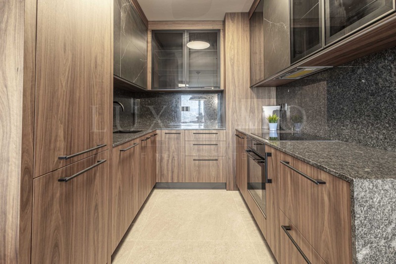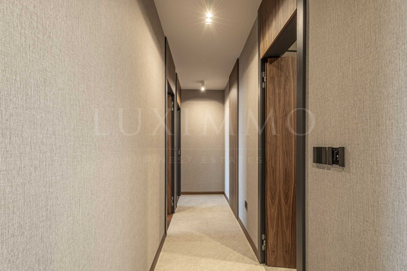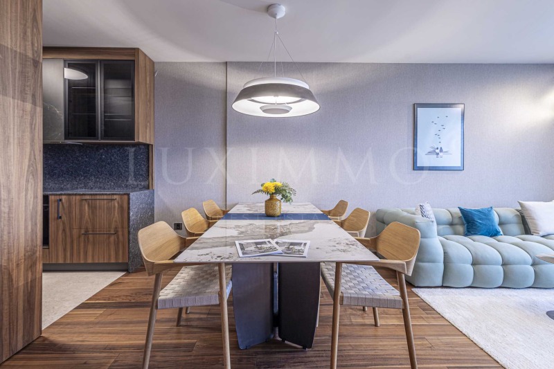 Жилището е с интериор в модерен стил, луксозно обзаведено с висок клас мебели от известен дизайнер и оборудване. Подовите настилки са с естествен дървен висококачествен паркет,а отоплението е с ТЕЦ и климатици.