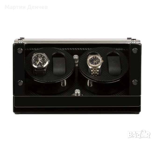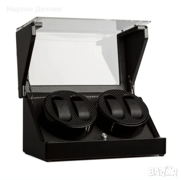 Стилна навиваща часовници витрина с 4 програми и вградена батерия, за излагане и навиване на 4 автоматични часовника. Предимства: елегантен индиго вид и витрина.
