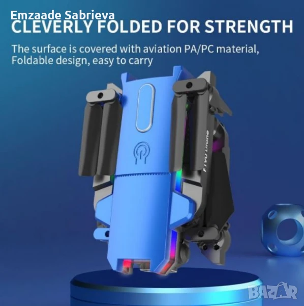 Материал: ABS пластмасаЦвят: ЧеренРазмери: 8.7 × 6.8 × 4.2 смТегло: 150 гЗахранване: Акумулаторна батерияБатерия на дрона: 3.7V / 15 мин. полетно времеБатерия на дистанционното: 3.7V, 1800 mAhМакс. обхват: до 150 мРаботна честота: 2.4 GHzАвтономия при полет: до 15 минGPS система: GPS / GLONASSПроцесор: 2.4 GHzМакс. ъгъл на наклон: 90°Камера:Резолюция на сензора: 8 MpxВидео резолюция: HD (поддържа 4K видео през софтуер)Свързаност: Wi-FiОперационна система: Съвместим с AndroidМаневреност: Въздух