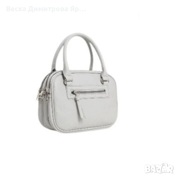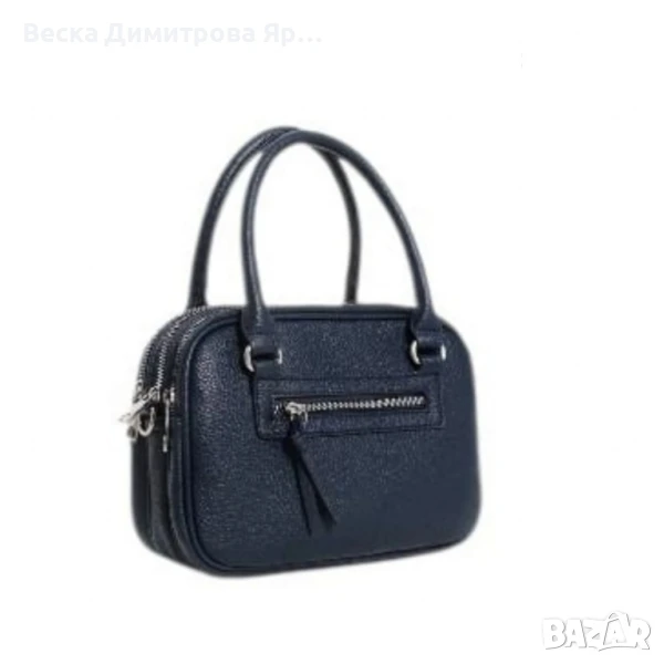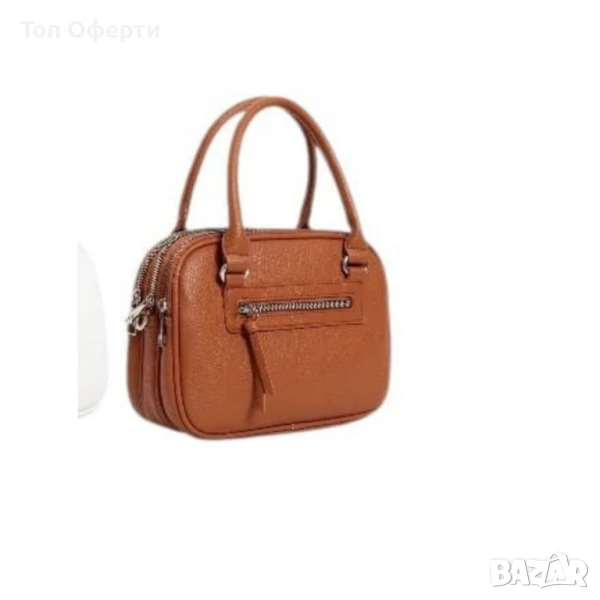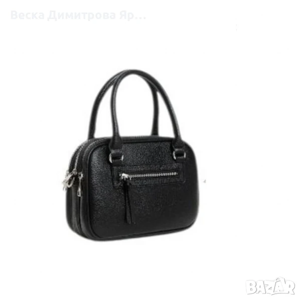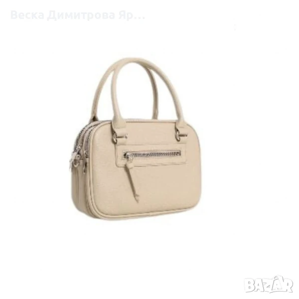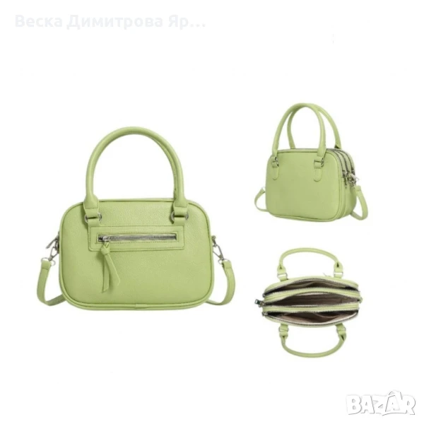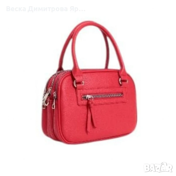 Тип продукт: Дамска чанта;Тази стилна и практична дамска чанта съчетава модерен дизайн с изключително удобство в ежедневието. Изработена е от висококачествена еко кожа с фина текстура и мека на допир повърхност. Предлага се в богата гама от цветове – черно, кремаво, тъмносиньо, червено, светлозелено, бяло, светлосиво, бежово и кафяво – за да отговори на всеки стил и вкус.Материал: висококачествена е к о к о ж а (полиуретан);Закопчаване: тройно основно отделение с цип;Външен джоб: 1 с цип (заден);Вътрешни отделения: 3 отделни прегради;Подплата: текстил;Метални елементи: сребристи;Дръжки: 2 къси дръжки за носене в ръка;Размери (приблизително):Дължина: 24 см;Височина: 17 см;Ширина: 11 см.