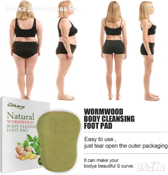 Детокс лепенки за крака с пелин и джинджифил – Natural Wormwood Body Cleansing Foot Pads → Обява 50538991