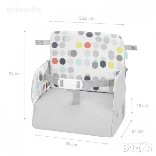 С преносимото повдигащо столче Sunday Pop вашето дете е в идеална позиция за хранене по всяко време, където и да се намирате / навън или в къщи. Това е здрава и удобна седалка, която се прикрепва лесно към всеки стол, като се използват две здрави каишки за захващане към седалката и още една за облегалката. Повдига детето ви с 12-15 см и има 3-точков колан за безопасност. Има удобно, просторно място за съхранение на предмети играчки храна, скрити в седалката, това улеснява носенето на храна, закуски или други аксесоари, необходими за храненето на вашето бебе. Столчето Sunday Pop е изключително компактно, удобно и лесно за носене.