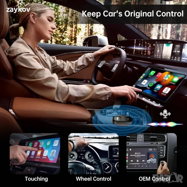 Лесна настройка: Свързването на безжичния адаптер CarPlay отнема само три прости стъпки, не са необходими допълнителни драйвери, приложения или тромави актуализации. След първоначалната настройка, адаптерът ще се активира автоматично безжично при стартиране на автомобила, като по този начин се избягва дублиране на работа.