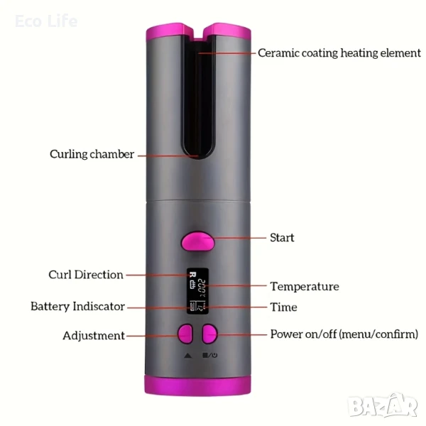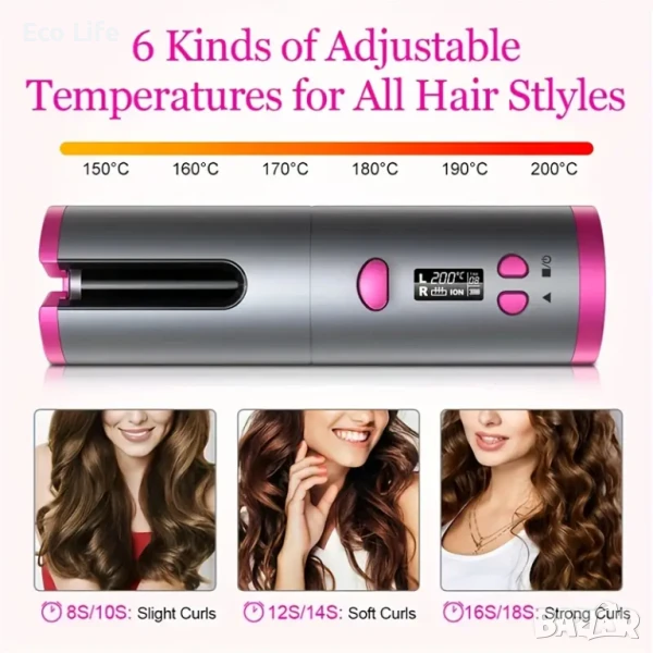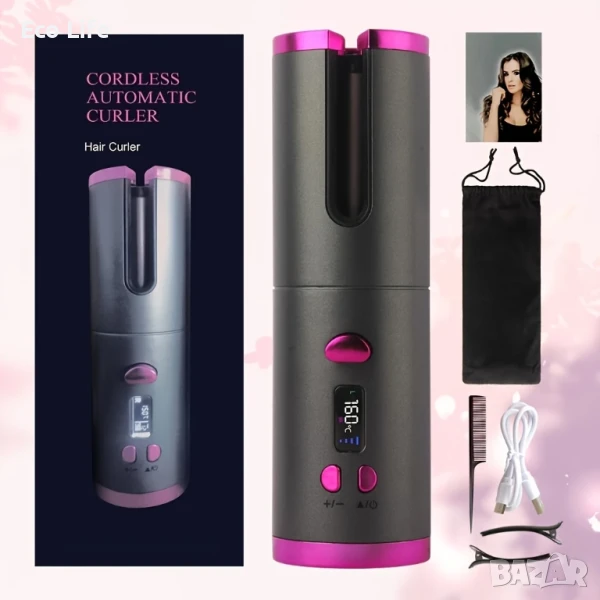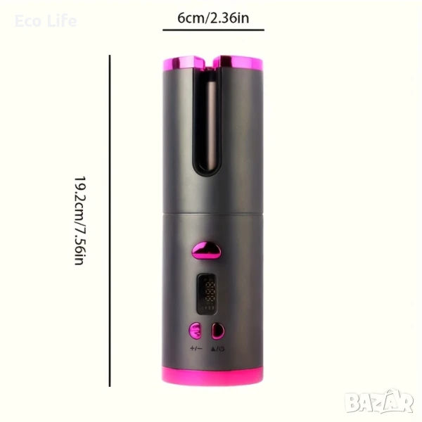 Със своите компактни размери и лек дизайн, автоматичната маша за коса е идеална за употреба в домашни условия или в движение. Можете да я поставите в чантата си или козметичната си чантичка и да я използвате навсякъде, където имате нужда от стил и перфекционизъм. Благодарение на вградената батерия, машата за коса осигурява продължителна работа без нужда от постоянно свързване към електрическата мрежа.
