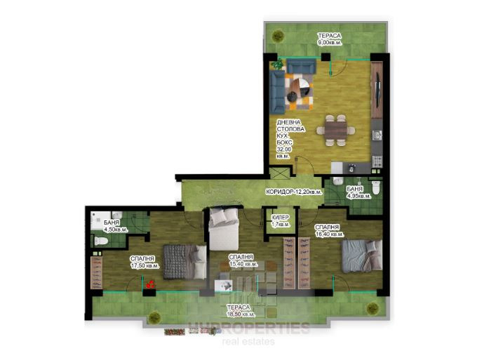Просторна дневна с кухненски бокс 32 м²