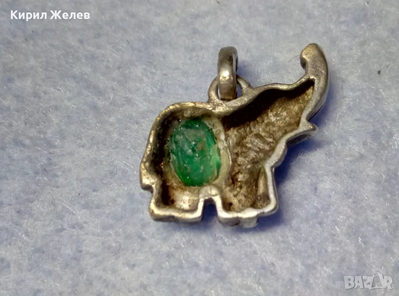 СТАР СКЪПОЦЕНЕН ФИГУРАЛЕН СРЕБЪРЕН ПЕНДАНТ СЛОНЧЕ СРЕБРО ВИСОКА ПРОБА с НАТУРАЛЕН ХРИЗОЛИТ 37437