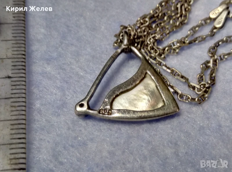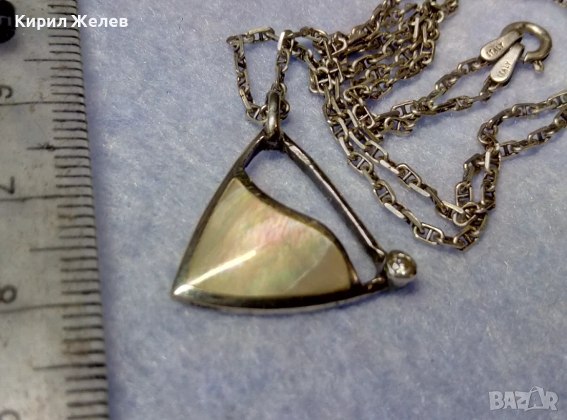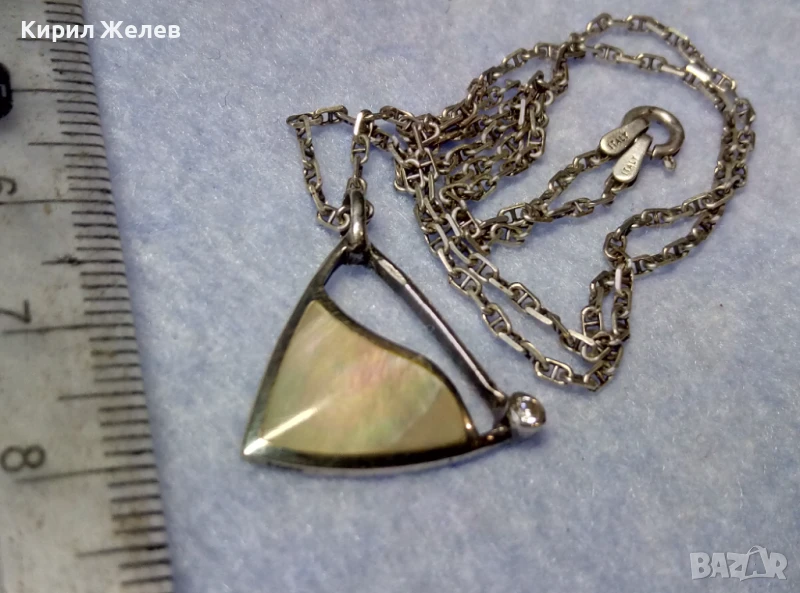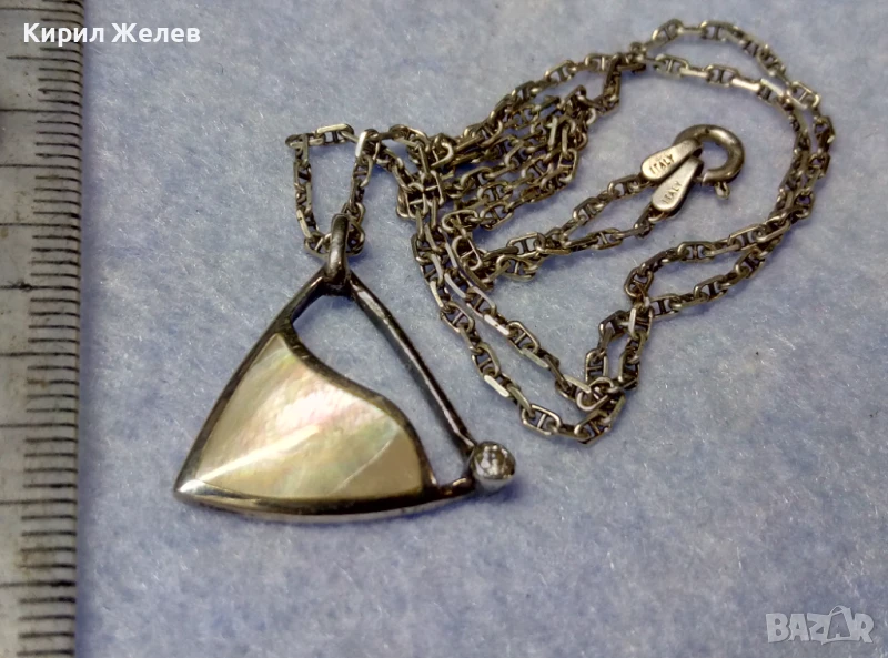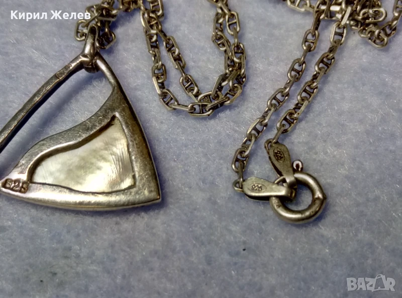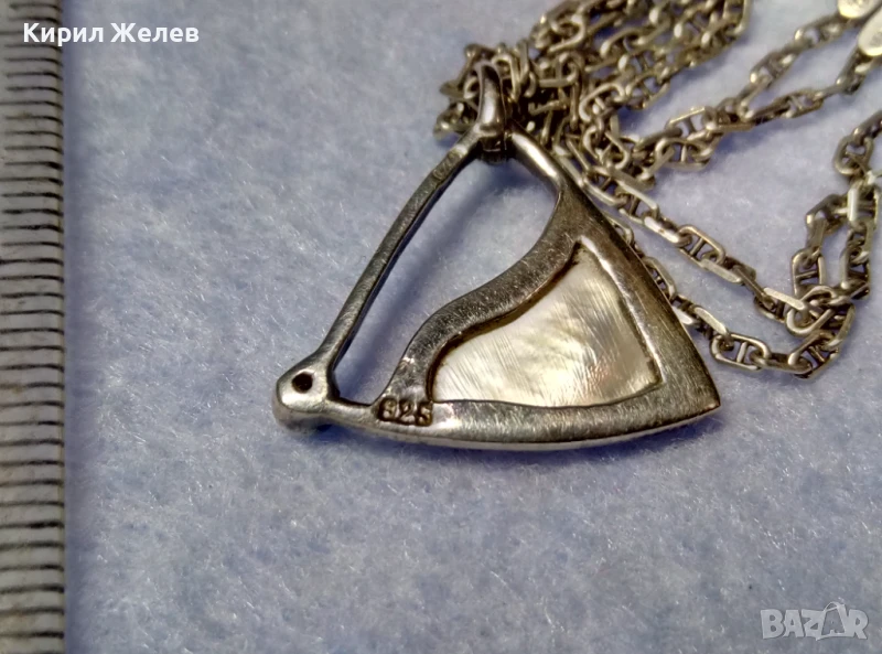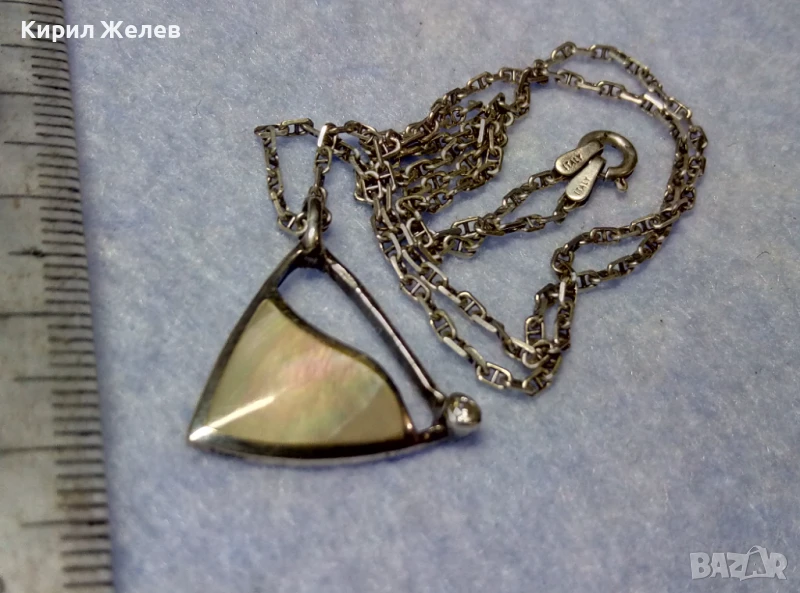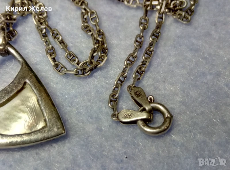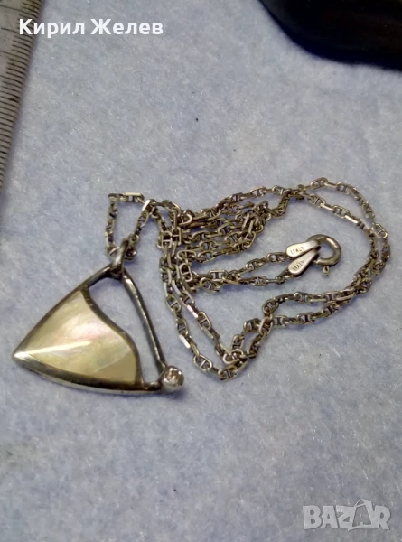ПРЕКРАСЕН СРЕБЪРЕН МЕДАЛЬОН с КРАЛСКИ СЕДЕФ ЦИРКОН и СРЕБЪРЕН ЛАНЕЦ РОДИРАНО СРЕБРО 925 ПРОБА 49774