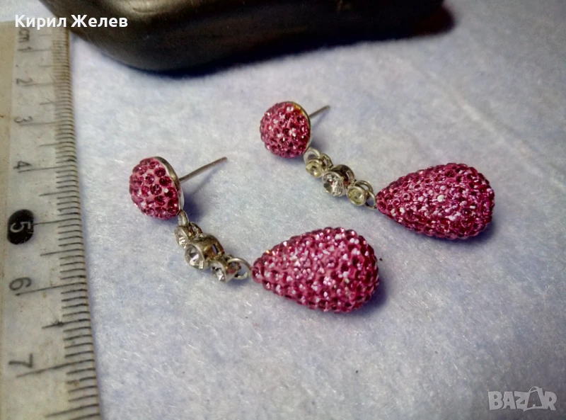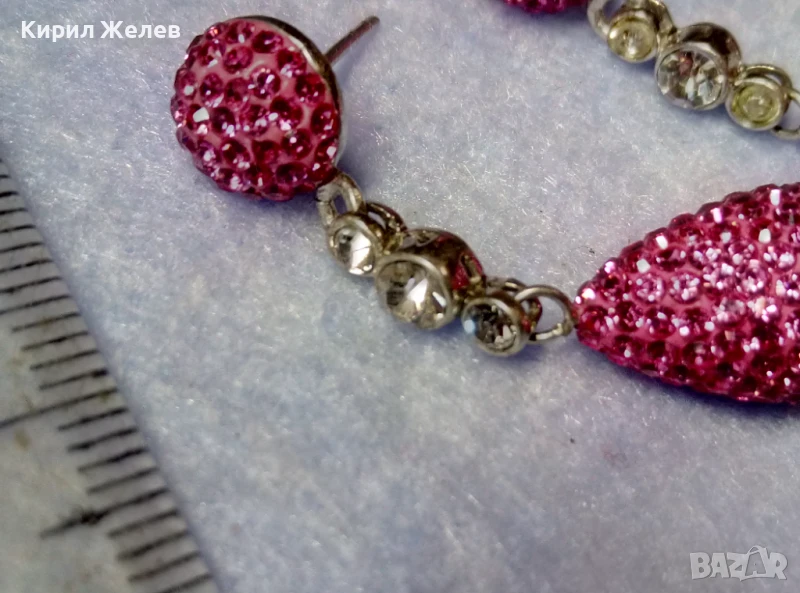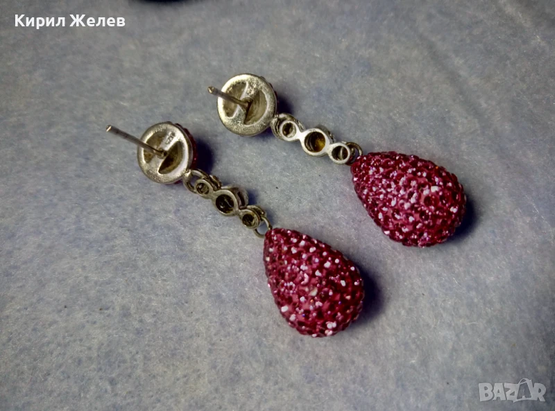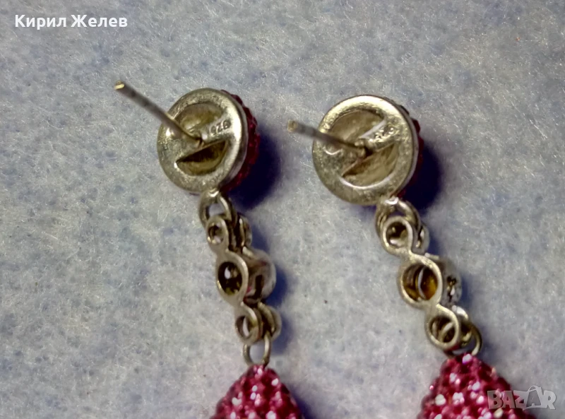 ЕФЕКТНИ ФЕШЪН АРТ СТИЛ СРЕБЪРНИ ОБЕЦИ СРЕБРО 925 с БЯЛА ПОЗЛАТА РОЗОВ ЕМАЙЛ и ИСКРЯЩИ КРИСТАЛИ 47935