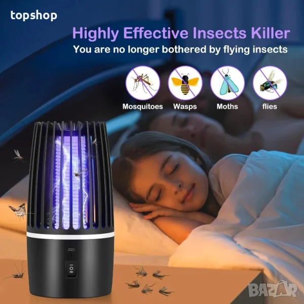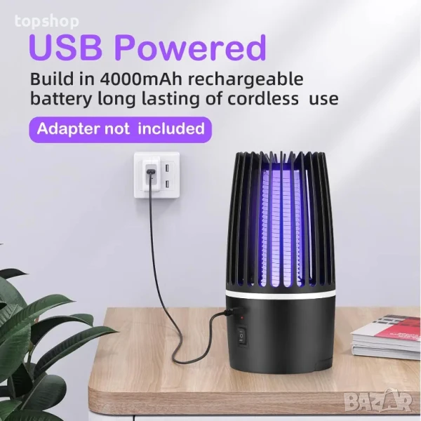 Преносимо захранване от USB: Нашата лампа за убиване на комари може да се захранва от USB кабел, което я прави идеална за употреба на открито. Просто използвайте power bank или аварийно захранване за удобно захранване в движение. Забележка: USB адаптер не е включен.