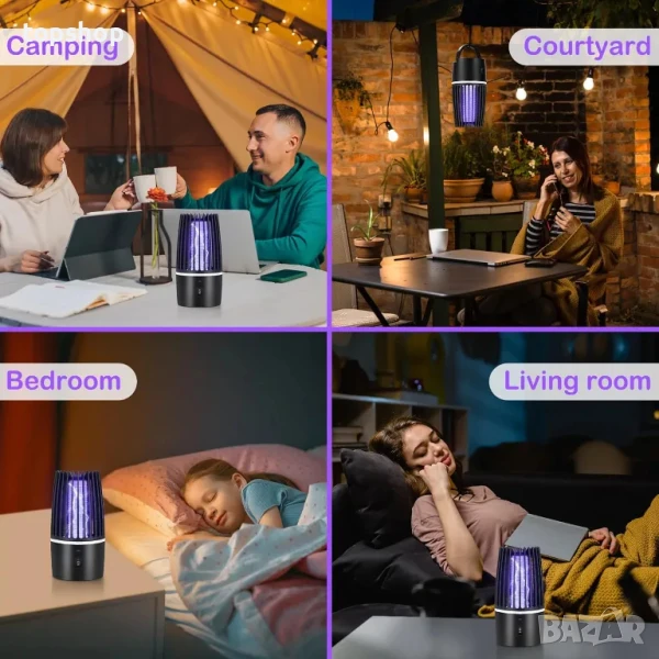 Подобрена способност за улавяне на насекоми: Нашият уред за унищожаване на насекоми е снабден с нова UV LED светлина с разширено покритие, привличаща и улавяща комари, мухи, оси, молци, мушици и други летящи насекоми.
