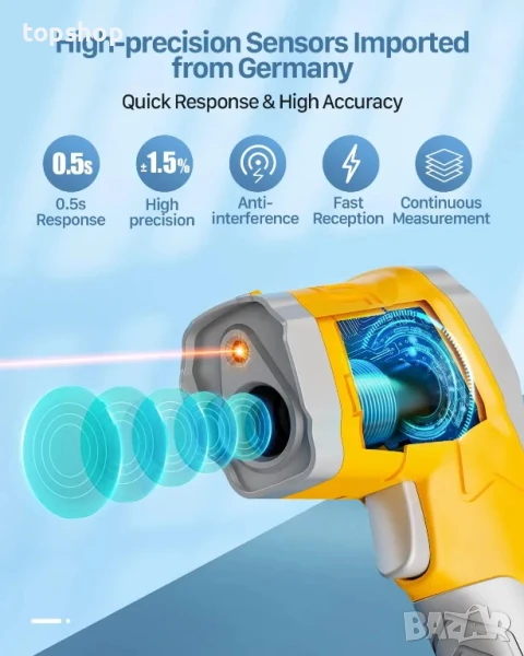 [2024 Надграден и висока точност] Инфрачервеният термометър FAHEFANA използва най-новия високочувствителен температурен сензор, който може да измерва температурния диапазон от -50°C до 600°C (-58°F до 1112°F) само за 0,5 секунди. Коефициентът на излъчване (0,1-1,0) може да се регулира според повърхностния материал, който ще се измерва, за да се подобри допълнително точността на измерване на инфрачервения термометър. За най-добри резултати четецът трябва да е на 14 инча от обекта.