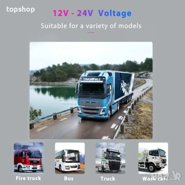 【Широк Съвместимост】Диапазон на напрежение от 12-24V DC захранване за голямо разнообразие от големи превозни средства като камиони, автобуси, кемпери, трактори, автомобили и др.