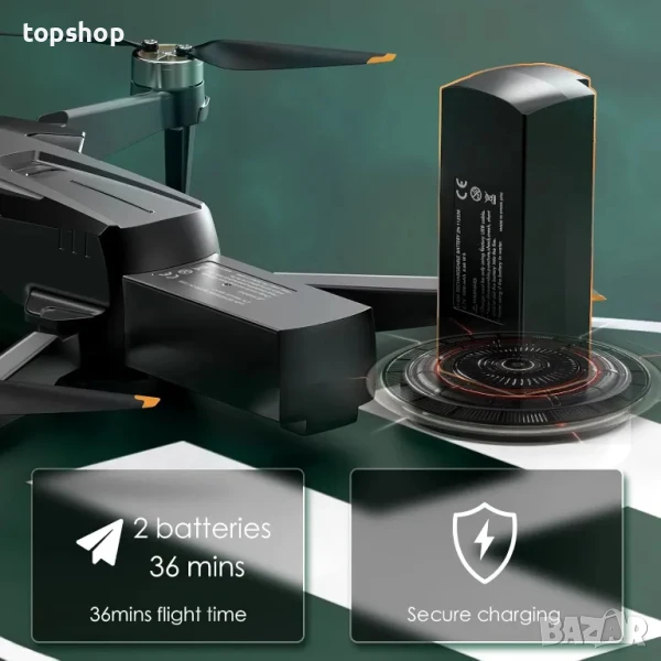 Силни безчеткови двигатели и модернизирани батерии: Издръжливите безчеткови двигатели от сплав се отличават със силна устойчивост на вятър, осигурявайки по-бърз, по-тих и по-мощен полет. Оборудван с 2 подобрени батерии, той може да осигури до 36 минути полетно време, позволявайки на вашия дрон да пътува свободно в небето.