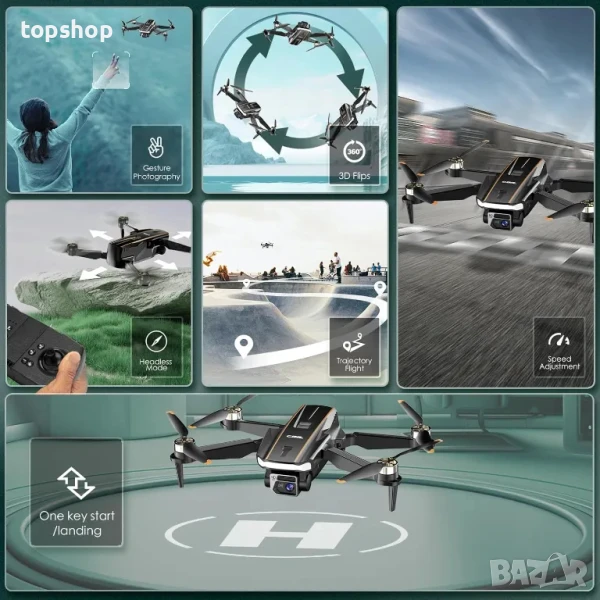 Всички функции: A68 е изключително удобен за потребителя, който идва с функции за стартиране/кацане с един ключ, оптично позициониране на потока, задържане на височината, 3D обръщане, режим без глава, регулиране на скоростта, селфи с жестове и траектория на полета, адаптира се към всички нива на опит дори за начинаещи.