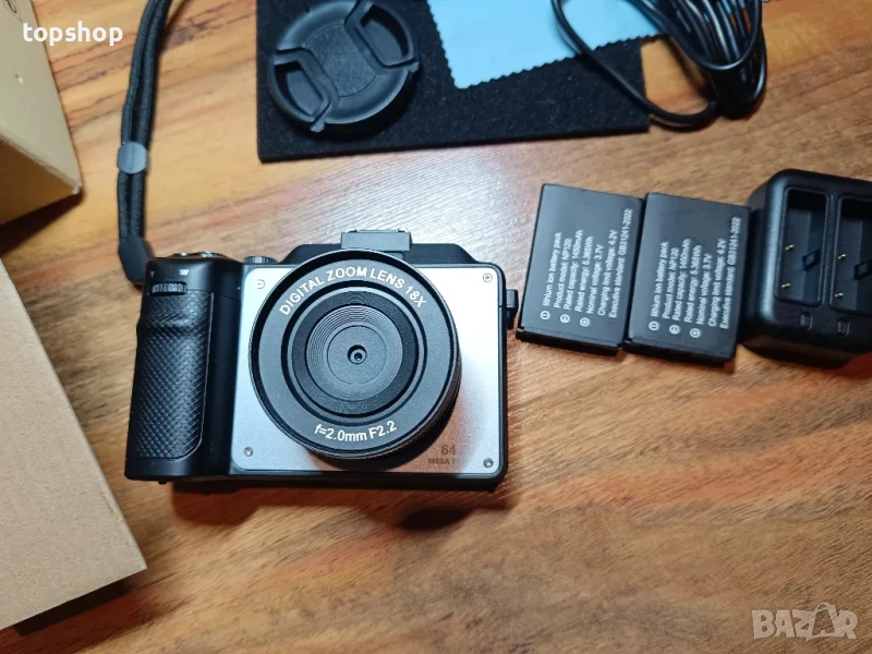 Цифрова фотокамера TEKXDD, 4K Vlog камера, 64GB SD, 18X увеличение, двойна камера предна и задна...
