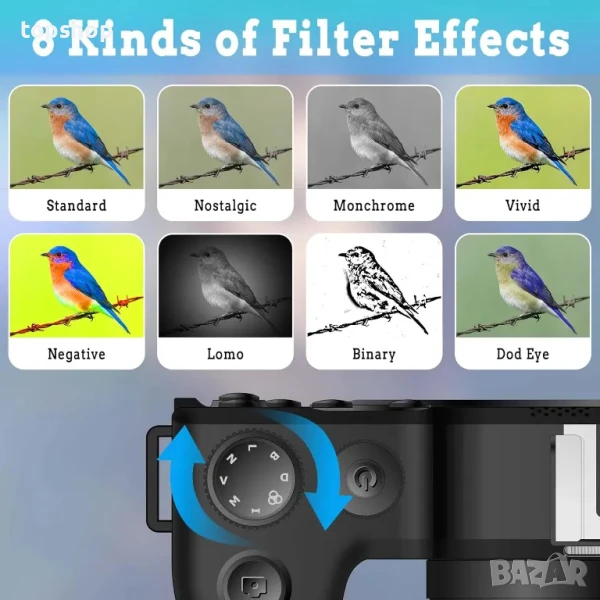 Творческа насочи и снимай камера: Многофункционалната ръкохватка разполага с ергономичен дизайн, който поставя основни функции като увеличение на фокуса и бутон на затвора на една ръка разстояние. Има дори колелце за превъртане под показалеца ви за бързи настройки на 7 цветови филтъра, което ви дава пълна творческа свобода да правите по-забавни снимки