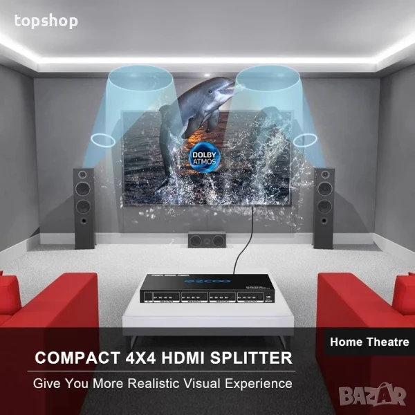 HDMI Matrix Coaxial Audio Breakout: HDMI Matrix de-embed Coaxial Optical 5.1CH следва четири HDMI OUT--- S/PDIF коаксиален аудио за всеки HDMI изход, за да се възползвате от системите високоговорители вместо вградените високоговорители на дисплеите. S/PDIF цифров аудио формат, преминава като DTS-HD/D-olby-TrueHD/LPCM7.1/DTS/D-olby-AC3/DSD, D-olby Atoms и всички други стандартни HDMI формати
