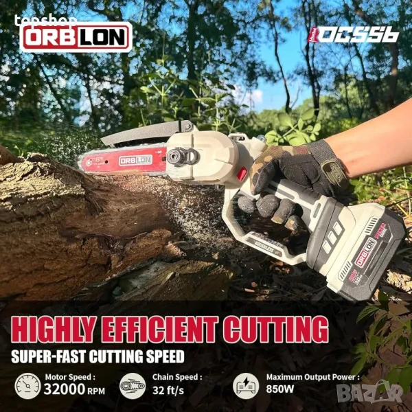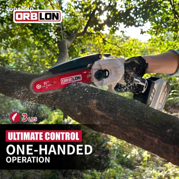 НОВ мини верижен трион, ORBLON 6'' 15см. безчетков, автоматично опъване на веригата и смазване