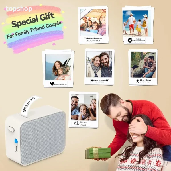 НОВ етикетен ( стикери ) принтер за телефон Pristar P15 с включена ролка. Съвместим с iOS, Android