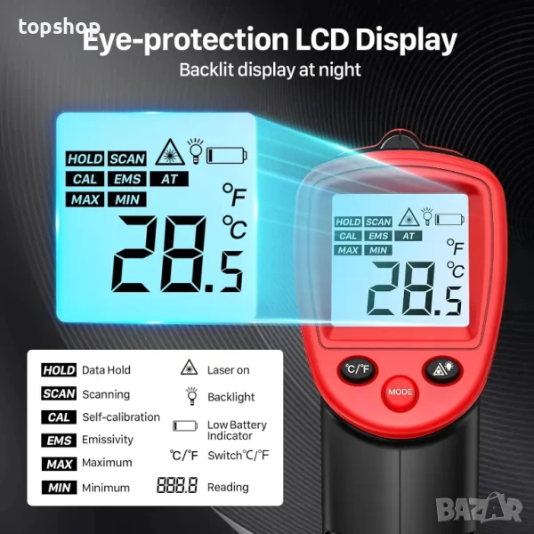 Нов инфрачервен лазерен термометър Benetech GM550 → Обява 50542495