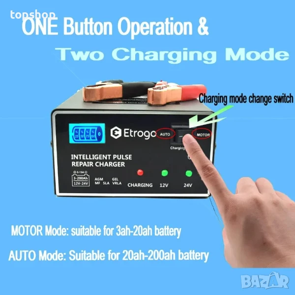 НОВО Зарядно устройство за акумулатори Etrogo 12V, 24V 1A/10A 5-степенно